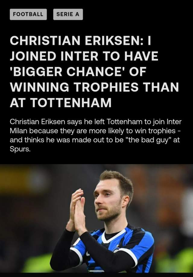 5、埃里克森(热刺→国米)——2700万欧