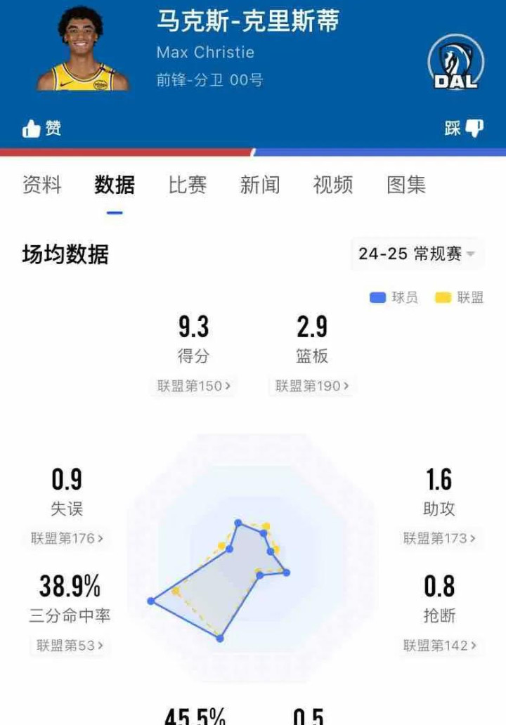 克里斯蒂诚然目前的数据还无法和科比、东契奇比较,然则他展现出来的后劲照旧让东说念主感到期待。