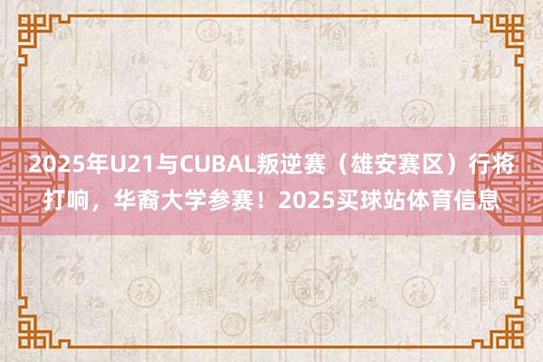 2025年U21与CUBAL叛逆赛 (雄安赛区) 将于9月22日-26日进行 华裔大学将参赛 球队名单如下: 赛事分为A、B两小组 A组为CBA俱乐部后生队: 浙江稠州银行、浙江广厦、 新疆广汇、上海久事 B组为高校球队: 华裔大学、上海交通大学、 湖南工业大学、北京体育大学 具体赛程如下: 开始:雄安体育中心、闽篮速递2025买球站体育信息 发布于:北京市