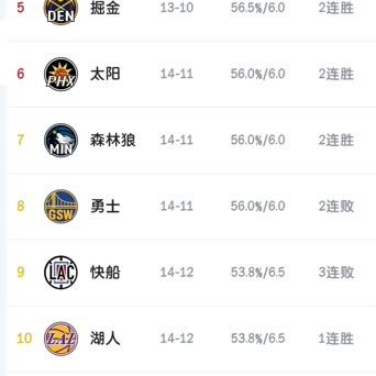 第三档:掘金,太阳,丛林狼,硬汉,快船,湖东谈主,马刺,国王,这一档的球队是西部果真狂野的体现,这一档的球队,谁皆可能打附加赛,谁也皆可能连附加赛皆打不了,包括湖东谈主,硬汉,太阳这三只流量大队。